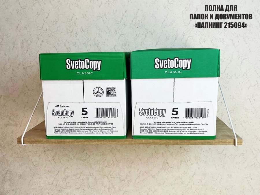 Полка для папок и документов "ПАПКИНГ 215094" высота 26 см размер 60х30 см белый и дуб сонома