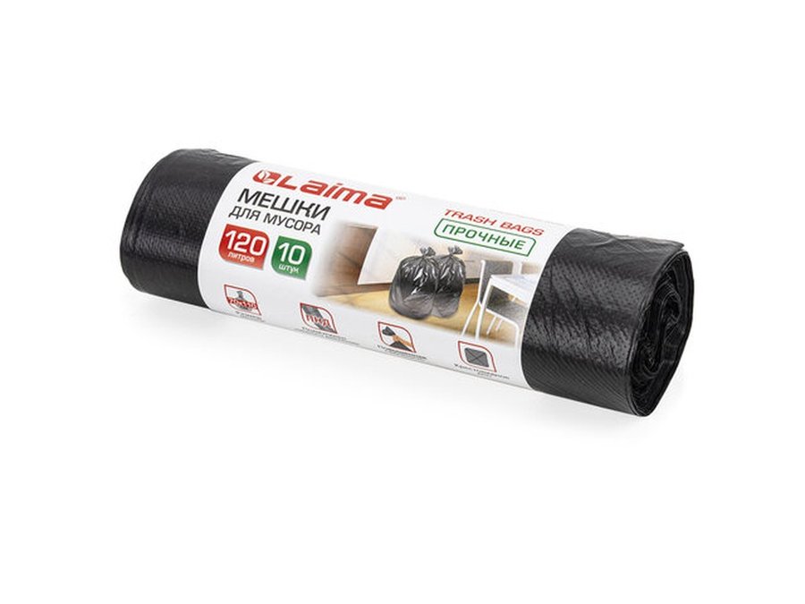 В корзину Купить в 1 клик Мешки для мусора 120литров, черные, в рулоне 10шт, ПНД, 18 мкм, 70х110см(+5%), прочные "BR-78267"