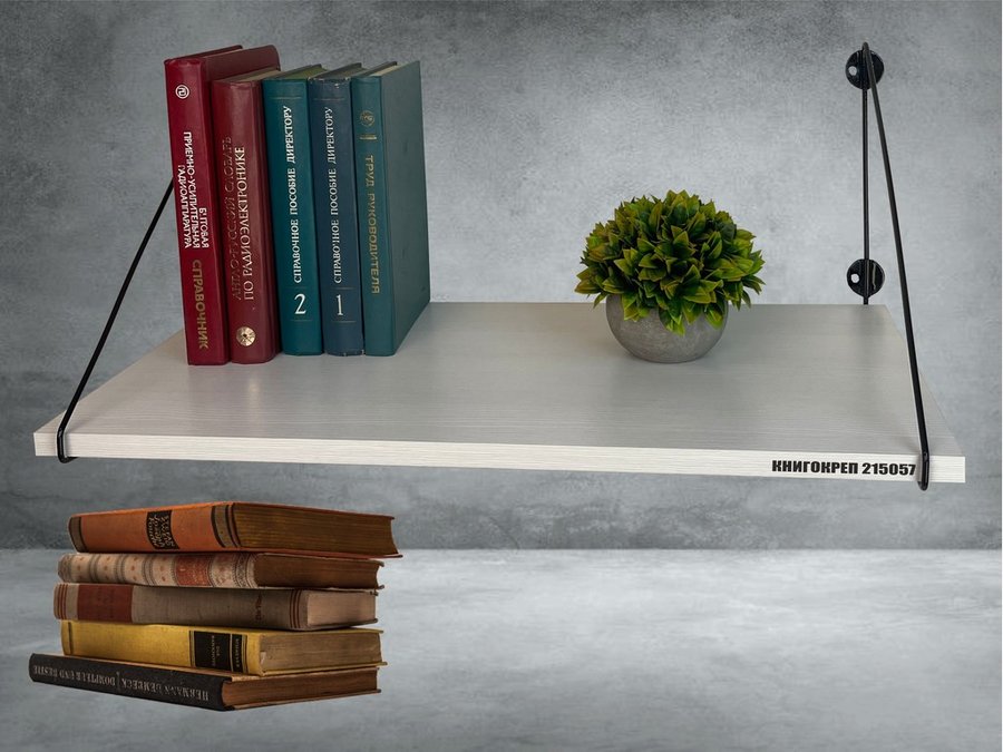 • Полка надежно крепится к стене при помощи анкеров или шурупов с дюбелями, на ней можно разместить книги, журналы
