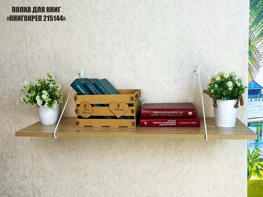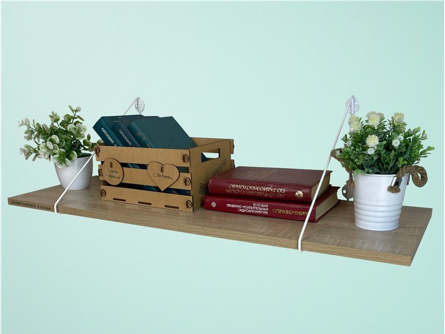 Полка для книг "КНИГОКРЕП 215144" высота 26 см размер 90х30 см белый и дуб сонома