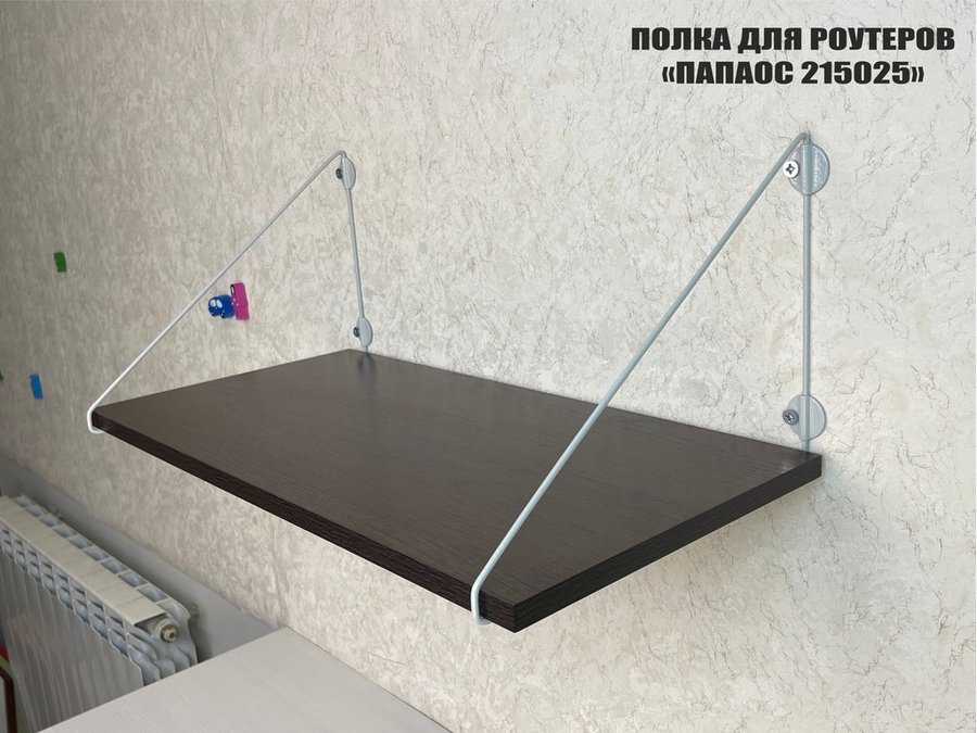 Полка надежно крепится к стене при помощи анкеров или шурупов с дюбелями, на ней можно разместить роутер и многое другое