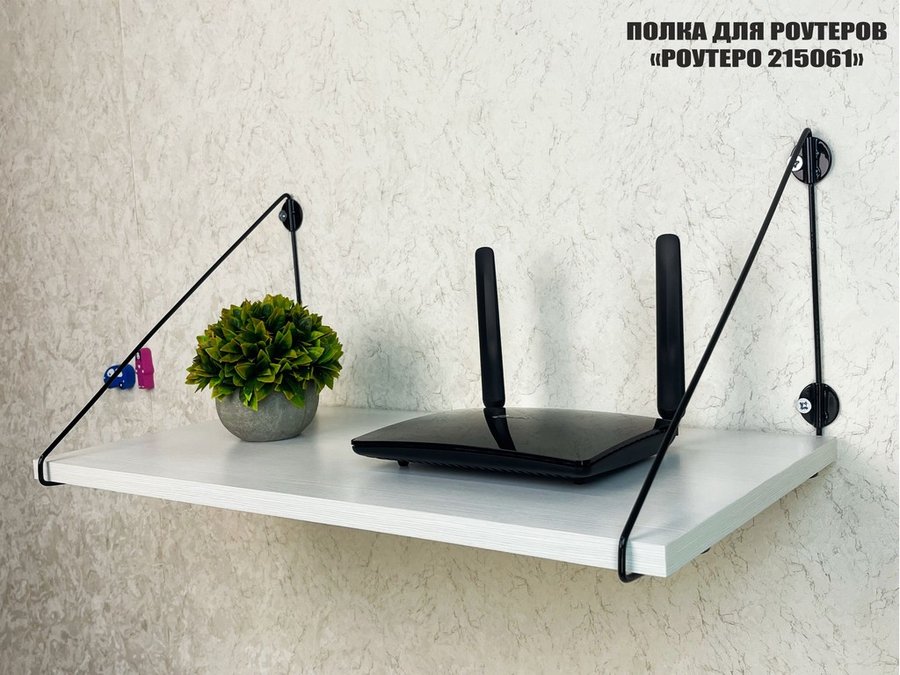 • Полка надежно крепится к стене при помощи анкеров или шурупов с дюбелями, на ней можно разместить роутер