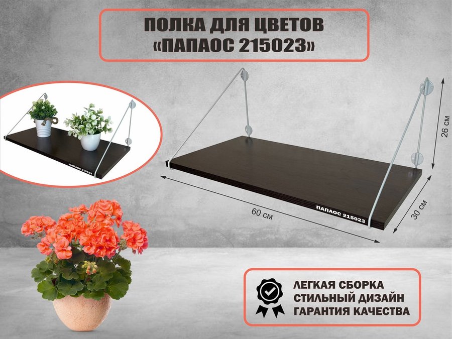В корзину Купить в 1 клик Полка для цветов "МАЙЦВЕТ 215063" высота 26 см размер 60х30 см черный и венге
