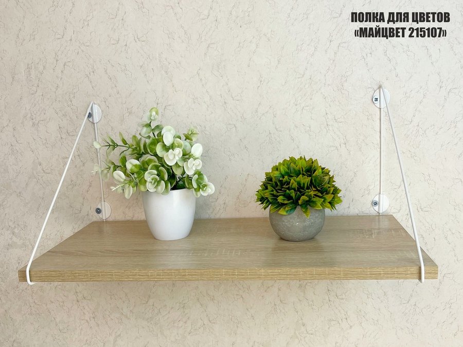 Полка выдержит тяжелые цветочные горшки с растениями, фоторамки, книги, сувениры и много другое.
