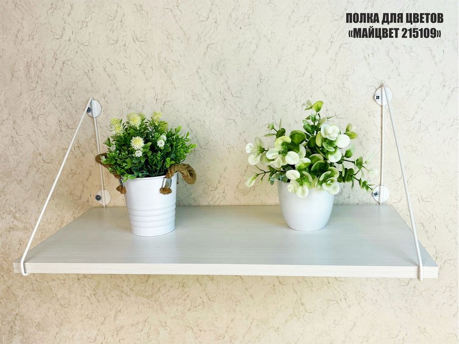 Полка выдержит тяжелые цветочные горшки с растениями, фоторамки, книги, сувениры и много другое.