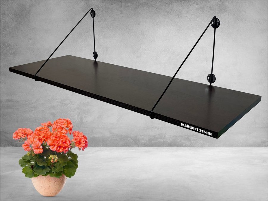 Полка выдержит тяжелые цветочные горшки с растениями, фоторамки, книги, сувениры и много другое.