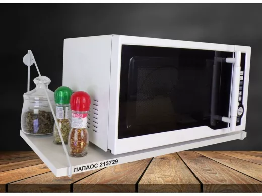 • Полки надежно крепятся к стене при помощи анкеров или шурупов с дюбелями, на них можно разместить микроволнрвую печь, кухонную технику, посуду, специи, сувениры, цветы, фотографии и многое другое