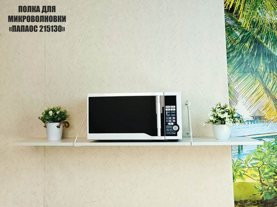 В корзину Купить в 1 клик Полка для микроволновки размер 120х30 см "ПАПАОС 215130" высота 26 см белый и сосна выбеленная
