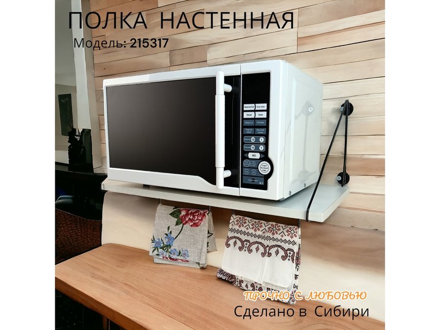 Полка для микроволновки размер 60х30 см "ПАПАОС 215317" черный и сосна выбеленная с держателями