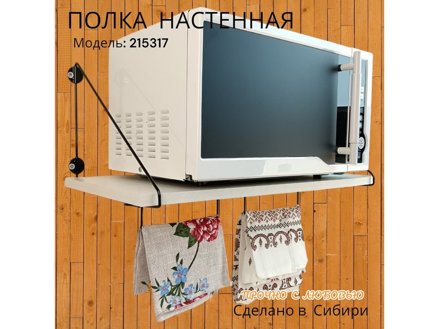 В корзину Купить в 1 клик Полка для микроволновки размер 60х30 см "ПАПАОС 215317" черный и сосна выбеленная с держателями