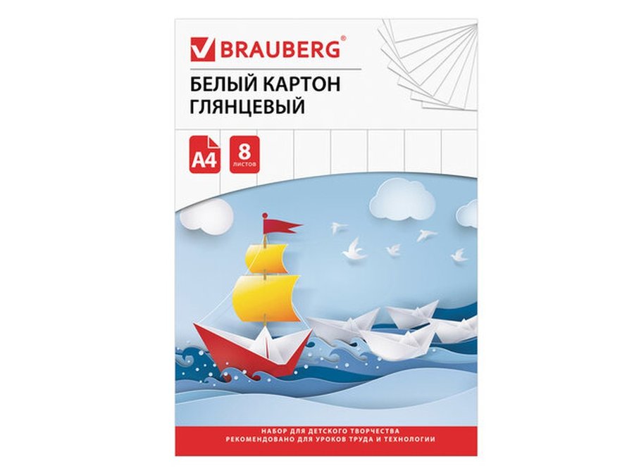 В корзину Купить в 1 клик Картон белый А4 МЕЛОВАННЫЙ, 8 листов, в папке "BR-74629", 200х290мм, Лодочка