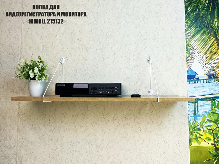 Полка для видеорегистратора и монитора "HIWOLL 215132" высота 26 см размер 90х30 см белый и дуб