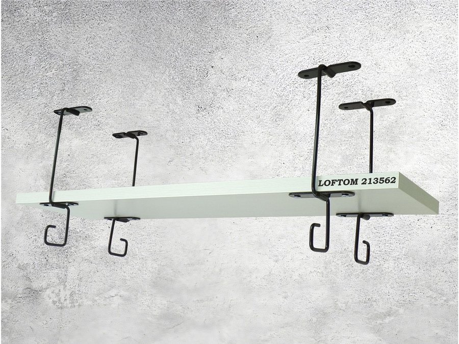 Полка подвесная под шкаф или стол черная, 60х15 см, сосна "LOFTOM 213562" высота 15см, с крючками
