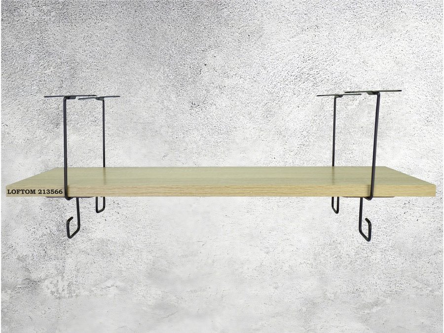 Полка подвесная под шкаф или стол черная, 60х15 см, дуб "LOFTOM 213566" высота 15см, с крючками