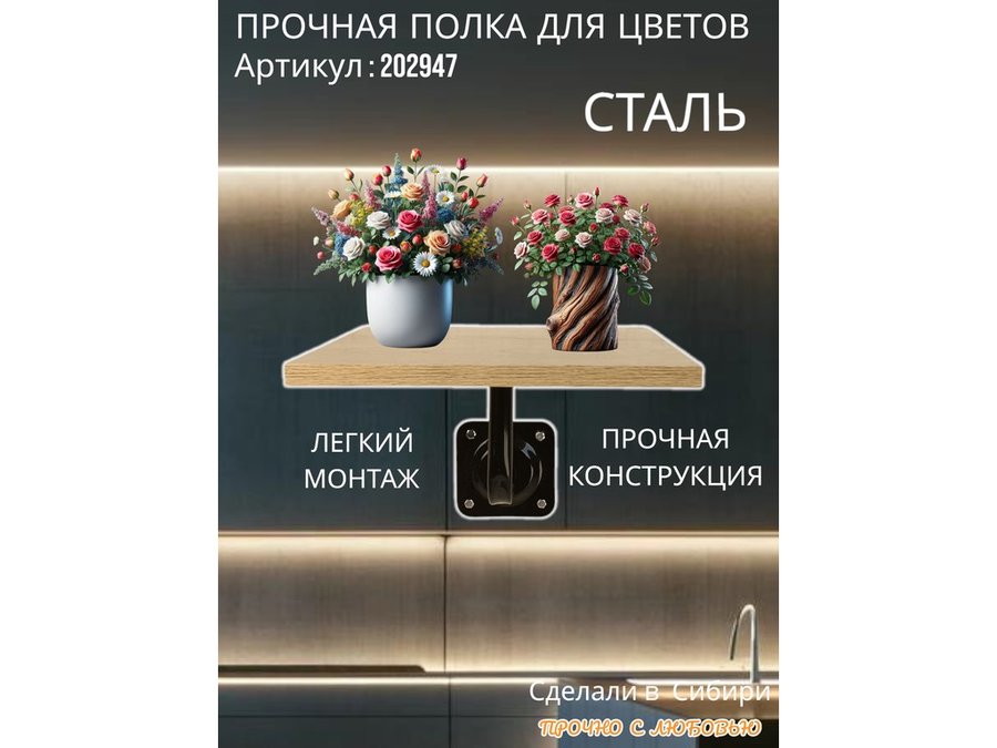 Полка для цветов настенная пьедестальная, размер 30х30см "LOFTOM-202947" цвет дуб сонома
