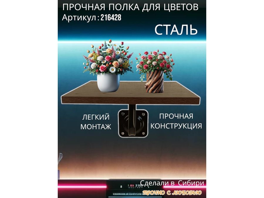 - Каркас изделия выполнен из высокопрочного стального профиля, полка изготовлена из ламинированного ДСП.