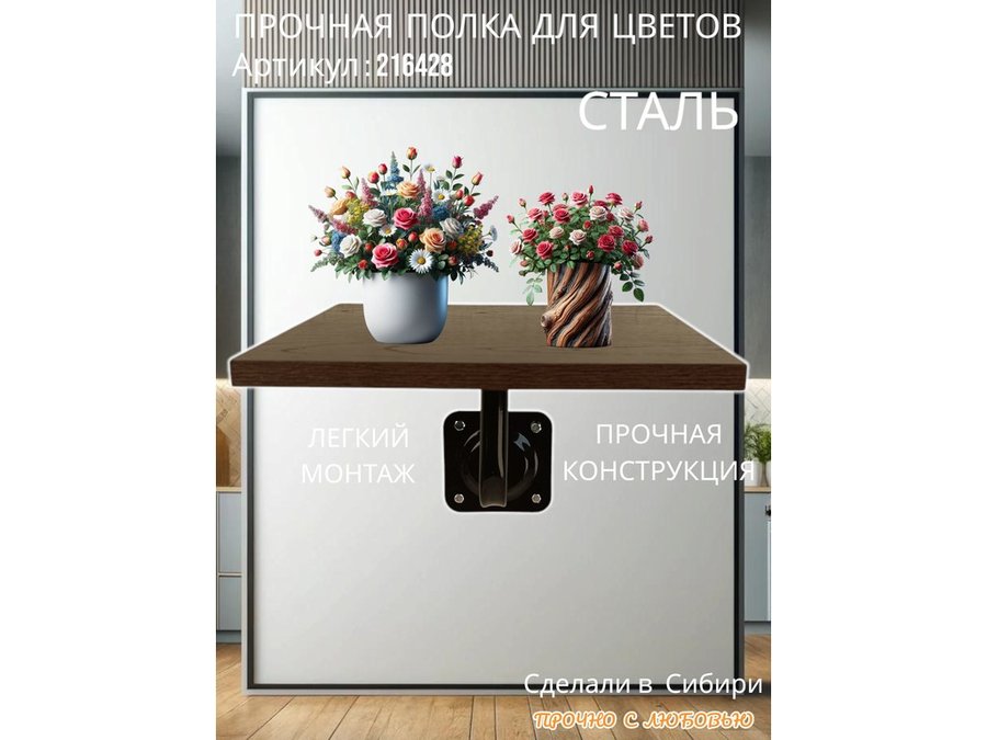 Полка для цветов настенная пьедестальная, размер 30х30см "LOFTOM-216428" цвет венге