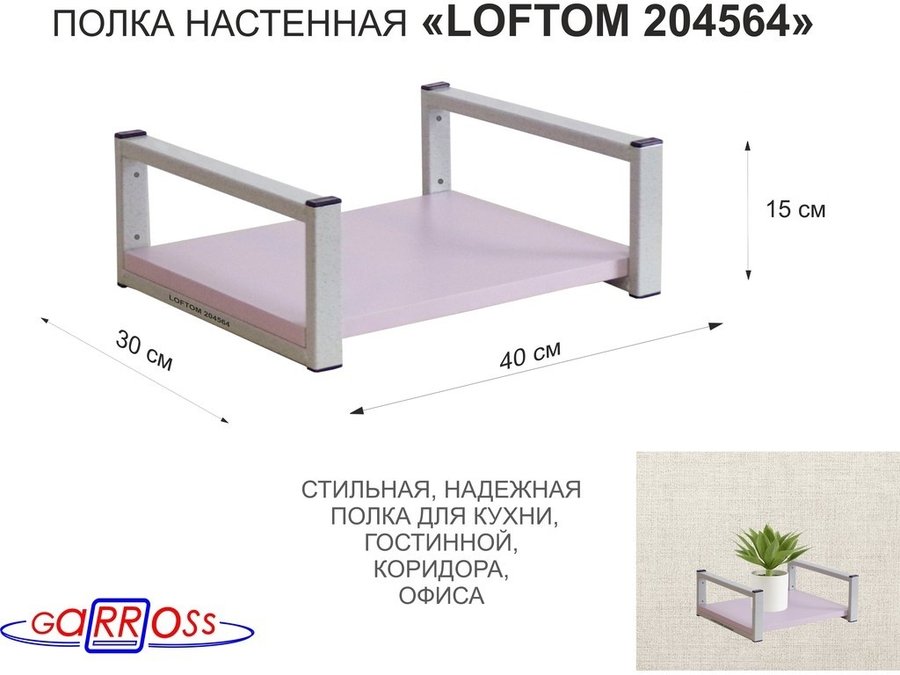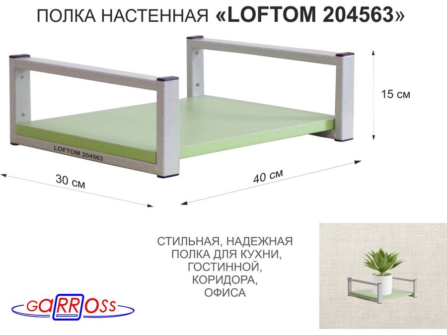 В корзину Купить в 1 клик Полка для цветов 15см "LOFTOM 204563" крепление к стене, размер 30х40см, серый/салатовый