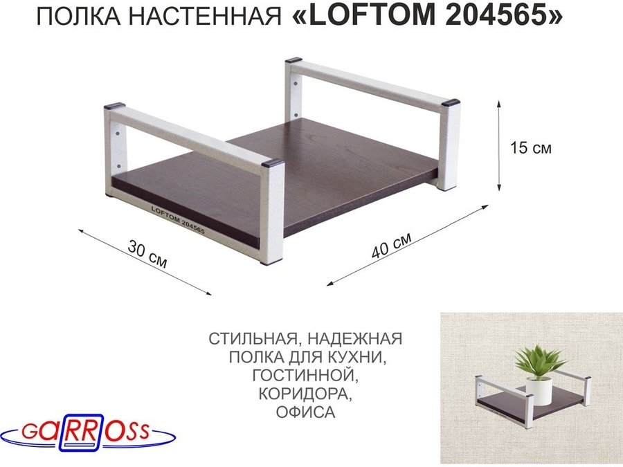 В корзину Купить в 1 клик Полка для цветов 15см "LOFTOM 204565" крепление к стене, размер 30х40см, серый/венге
