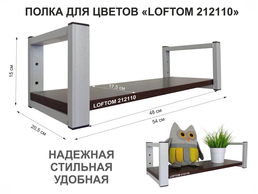 В корзину Купить в 1 клик Полка для цветов, серая "LOFTOM 212110" высота 15 см, с одной полкой 54х17,5 см, венге