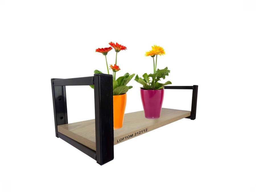 Полка для цветов, черная "LOFTOM 212112" высота 15 см, с одной полкой 54х17,5 см, дуб сонома