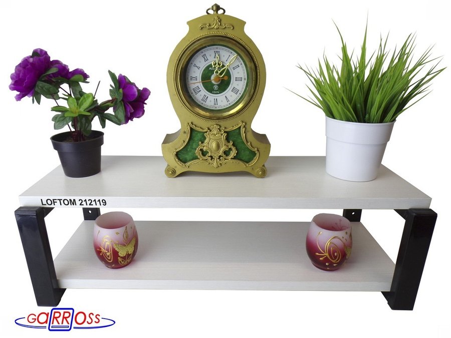 Полка для цветов, черная "LOFTOM 212119" высота 15 см, с двумя полками 54х17,5 см, сосна