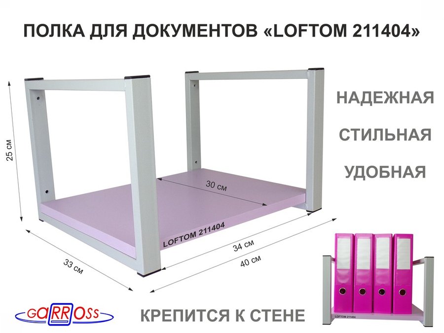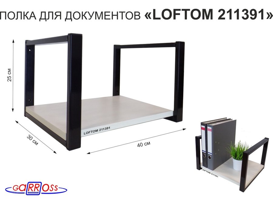 . Полки для папок-регистраторов и документов "LOFTOM" высота 25 см, полки 40х30см, 1 уровень
