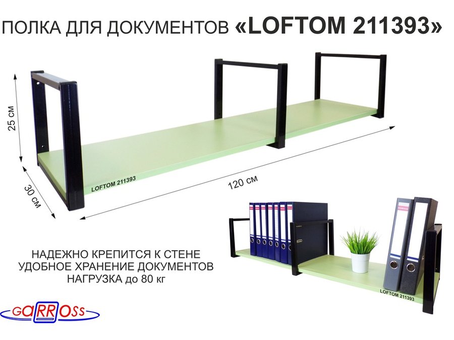 В корзину Купить в 1 клик Полка для документов к стене, высота 25см, размер 30х120см, серая "LOFTOM 211400" салатовый