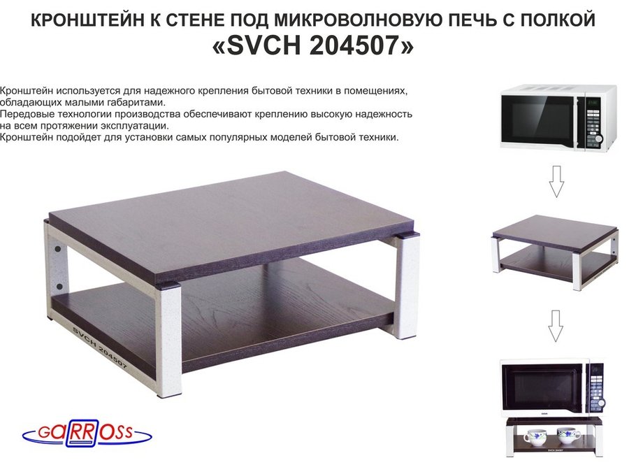 Кронштейн для микроволновки, 17см серый "SVCH 204507" под микроволновую печь, полка 30х40см, венге