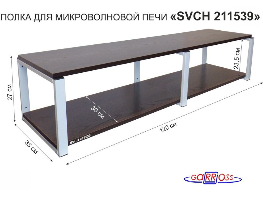 Кронштейн для микроволновки, 27см серый, 2 полки 30х120см "SVCH 211539" под микроволновую печь,венге