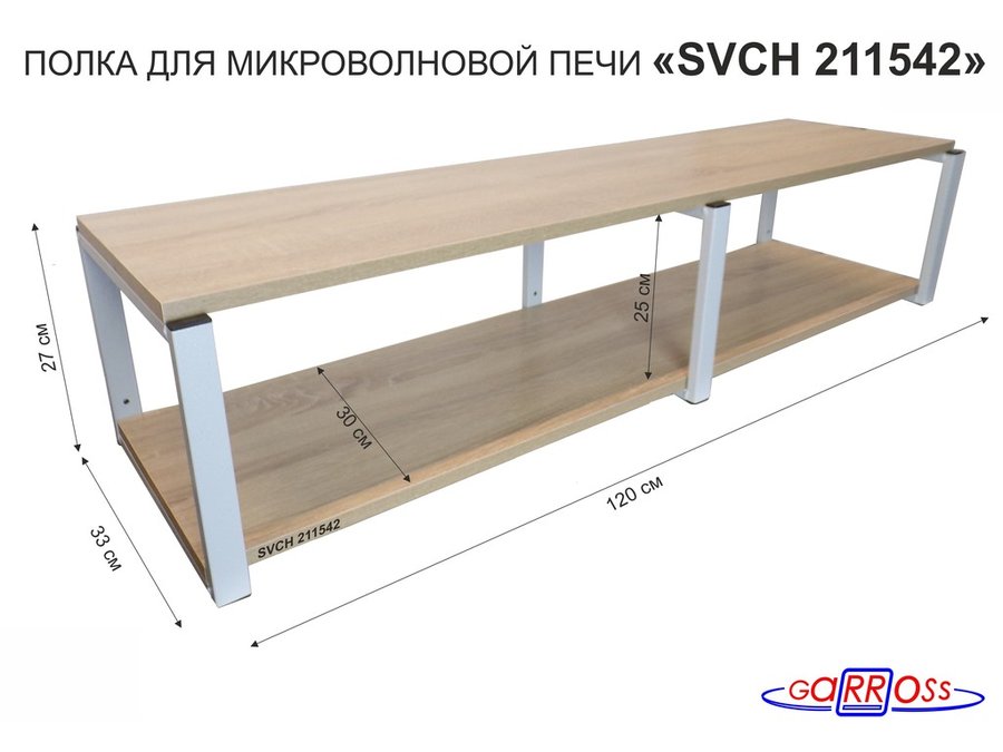 В корзину Купить в 1 клик Кронштейн для микроволновки, 27см серый, 2 полки 30х120см "SVCH 211542" под микровол.печь,дуб сонома