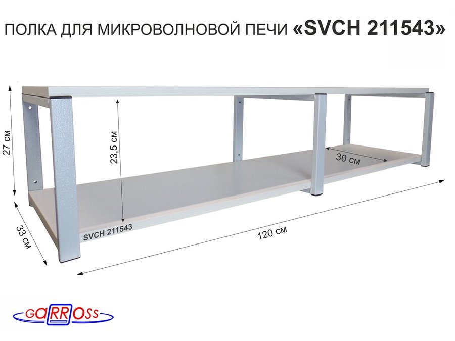 Кронштейн для микроволновки, 27см серый, 2 полки 30х120см "SVCH 211543" под микроволновую печь,сосна