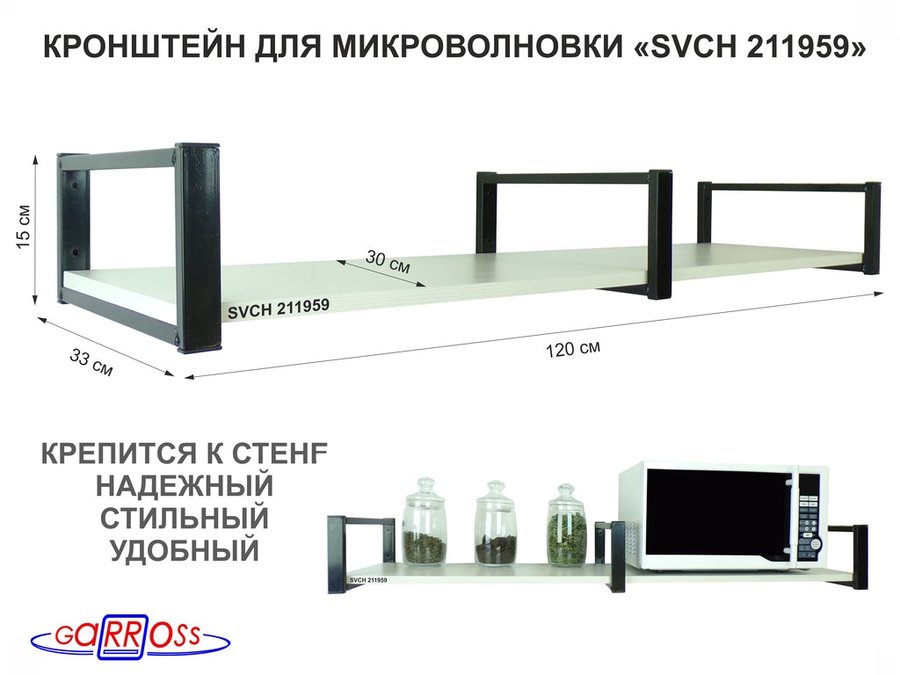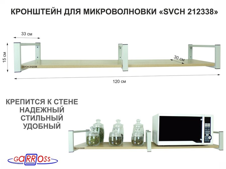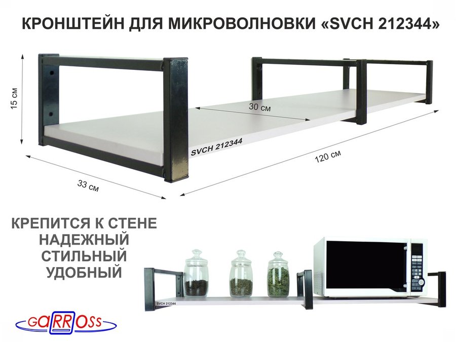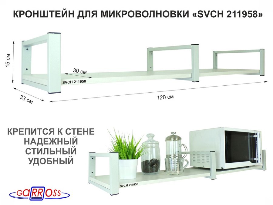 Полки для микроволновок "SVCH" кронштейны для СВЧ печей, высота 15см, 120х30см, 1 уровень снизу