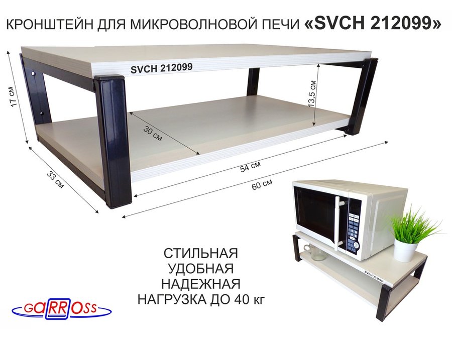 Полки для микроволновок "SVCH" кронштейны для СВЧ печей, высота 17см, 60х30см, 2 уровня