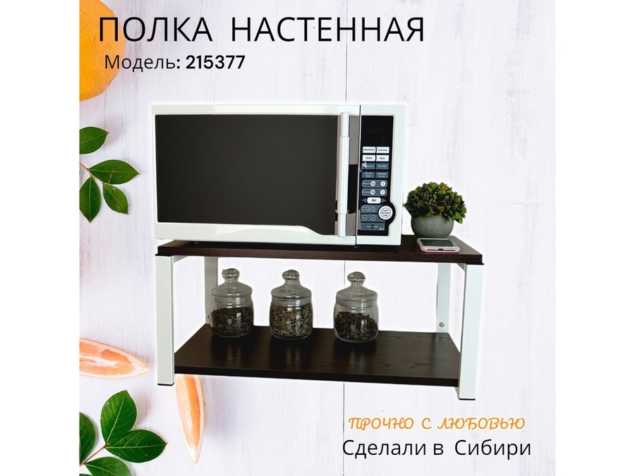 Полка для микроволновки "SVCH 215377" высота 27см, размер полки 60х30см, белая, венге