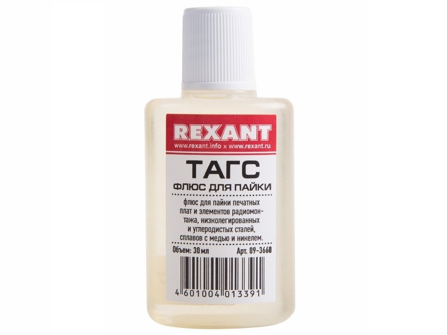 В корзину Купить в 1 клик Флюс для пайки ТАГС 30мл REXANT