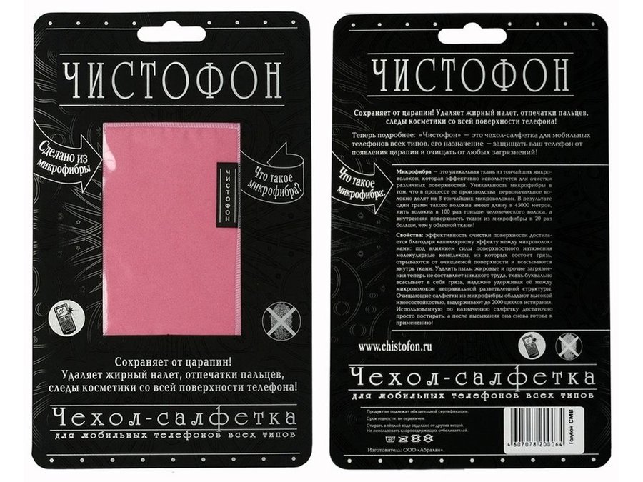 В корзину Купить в 1 клик Чехол-салфетка для моб. тел. ЧИСТОФОН, розовый CMR