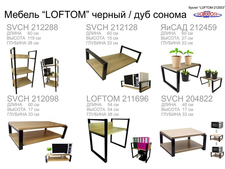 Кронштейн для микроволновки, 21см чёрный "SVCH 212314" две полки 35х54см, дуб сонома
