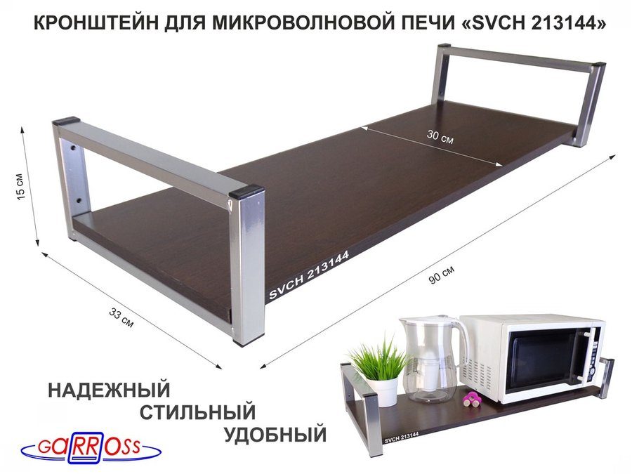 В корзину Купить в 1 клик Кронштейн для микроволновой печи, 15см серебристый "SVCH 213144" полка 90х30, венге