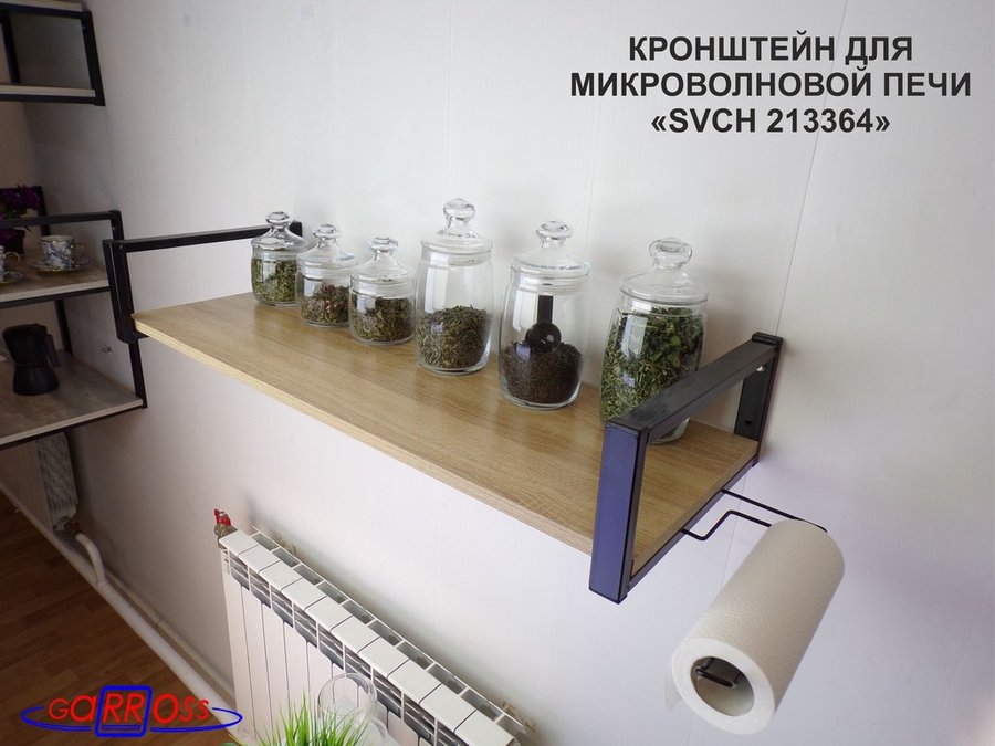 Кронштейн для микроволновой печи, 15см чёрный "SVCH 213364" полка 90х30, дуб, держатель полотенц.
