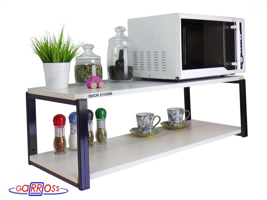 Кронштейн для микроволновки, 27см черный "SVCH 213366" полки для кухни, 90х30, сосна выбеленная