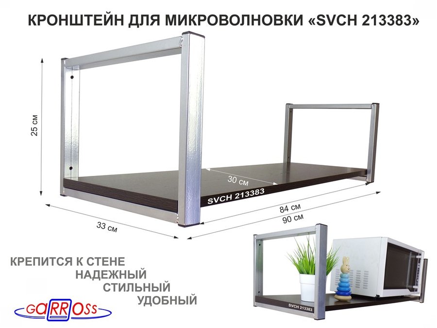 В корзину Купить в 1 клик Кронштейн для микроволновки, 25см серый, 1 полка 90х30см "SVCH 213380" для кухни, венге