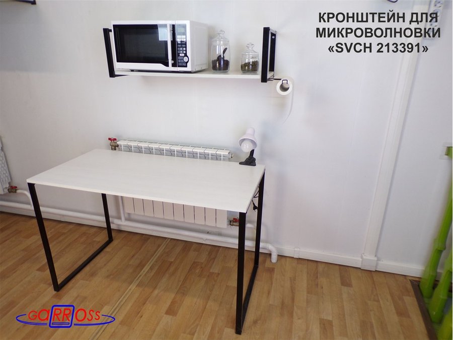 Кронштейн для СВЧ, 25см черный, 90х30см, держатель полотенец правая сторон "ПолкаКрепка-213391"сосна
