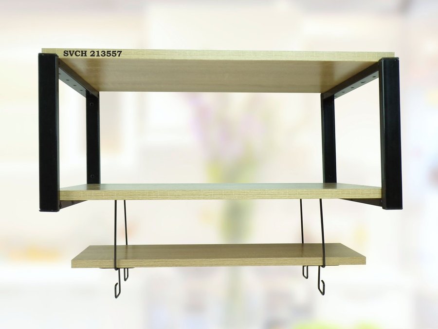 Кронштейн для микроволновки с подвесной полкой, высота 27см, черный "SVCH 213557" 60х30 см , дуб