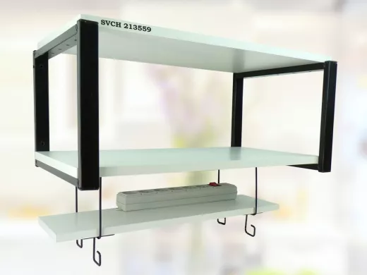 - На верхней полке можно разместить микроволновую печь или другую кухонную технику, на средней отлично "встанет" посуда, баночки под сыпучее и многое другое, а нижняя полка отлично подойдет для специй, таймера или маленьких сувениров