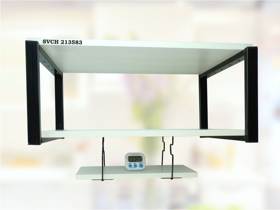 Полка для микроволновки 60x30см с подвеской и таймером 40x15см, 27см, черный "SVCH 213583" , сосна