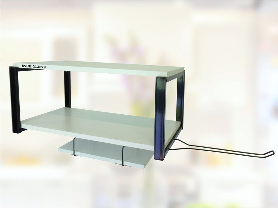 Полка для микроволновки 60х30см с подвеской 40х15см, 27см, черный "SVCH 213579",сосна, с держателем