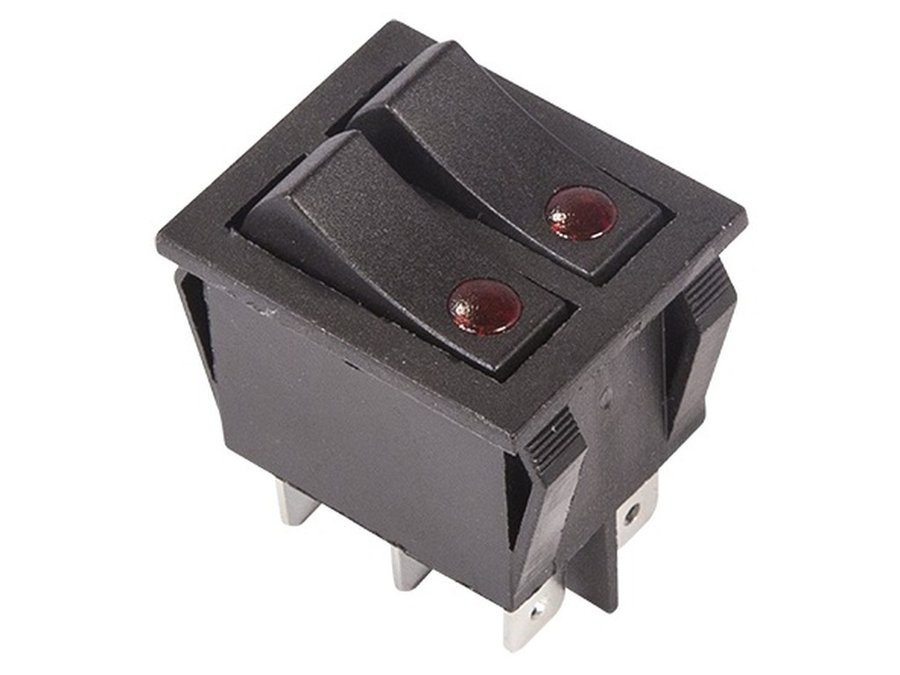 В корзину Купить в 1 клик Выключатель клавишный 250V 15А (6с) ON-OFF черный с подсветкой ДВОЙНОЙ REXANT