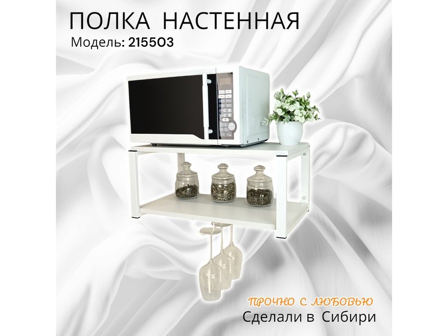 В корзину Купить в 1 клик Полка c одним бокалодержателем для микроволновки "SVCH 215503" 60х30см, белая, белый