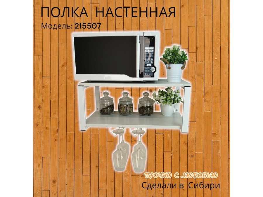 В корзину Купить в 1 клик Полка c двумя бокалодержателем для микроволновки "SVCH 215507" 60х30см, белая, сосна выбеленная